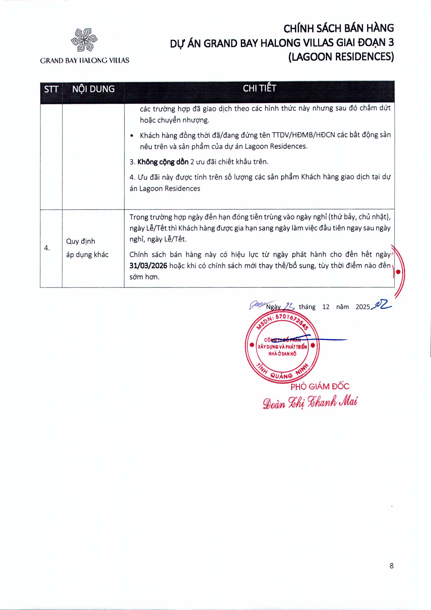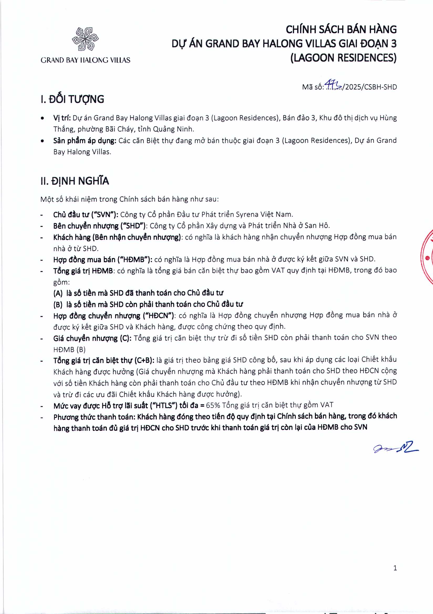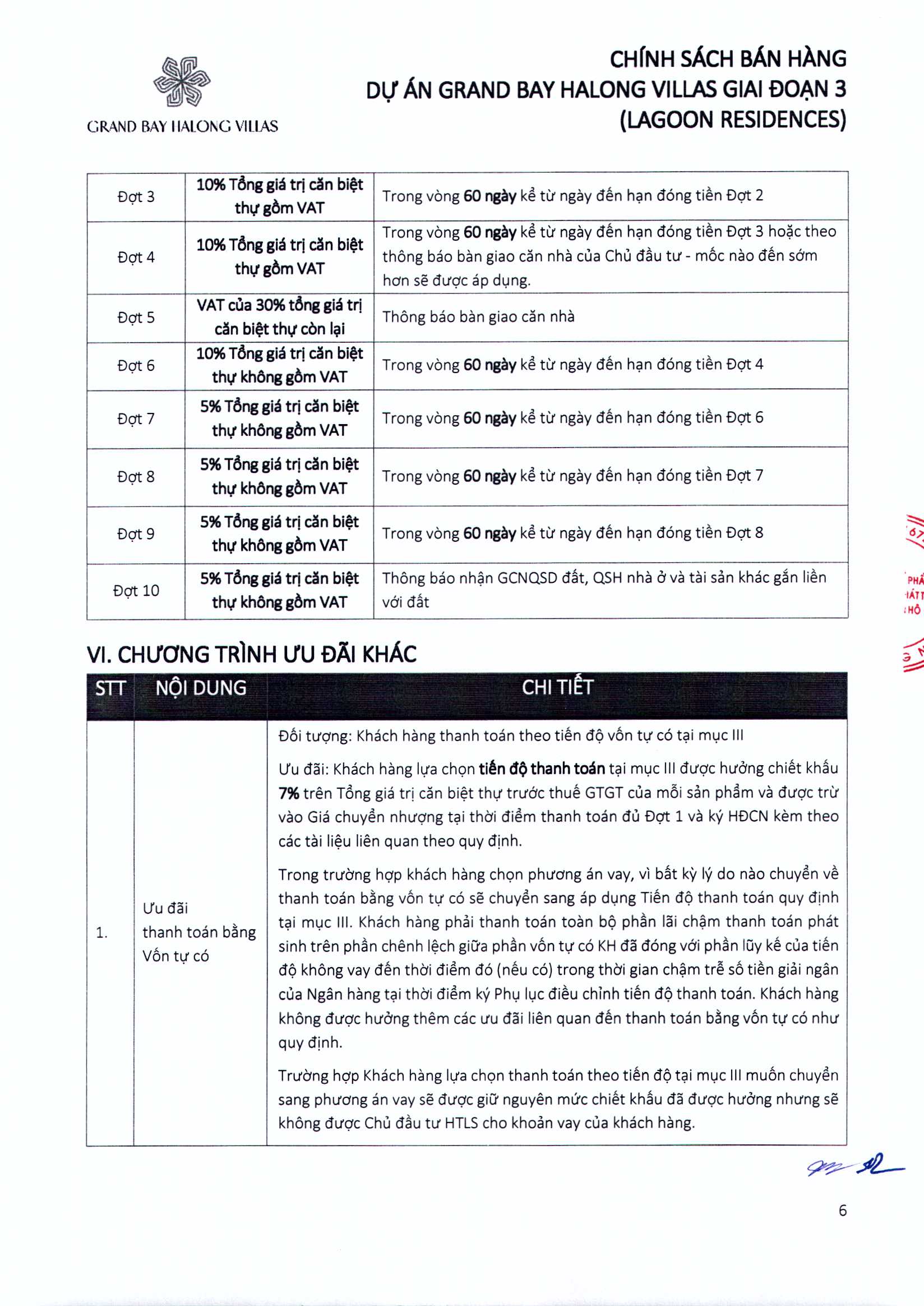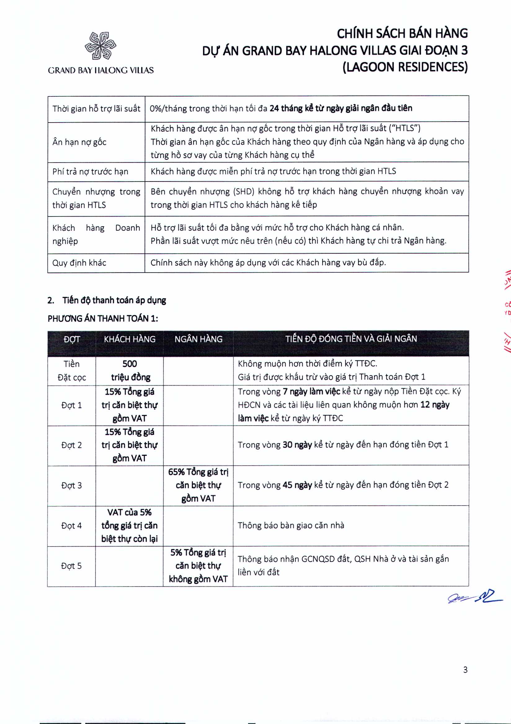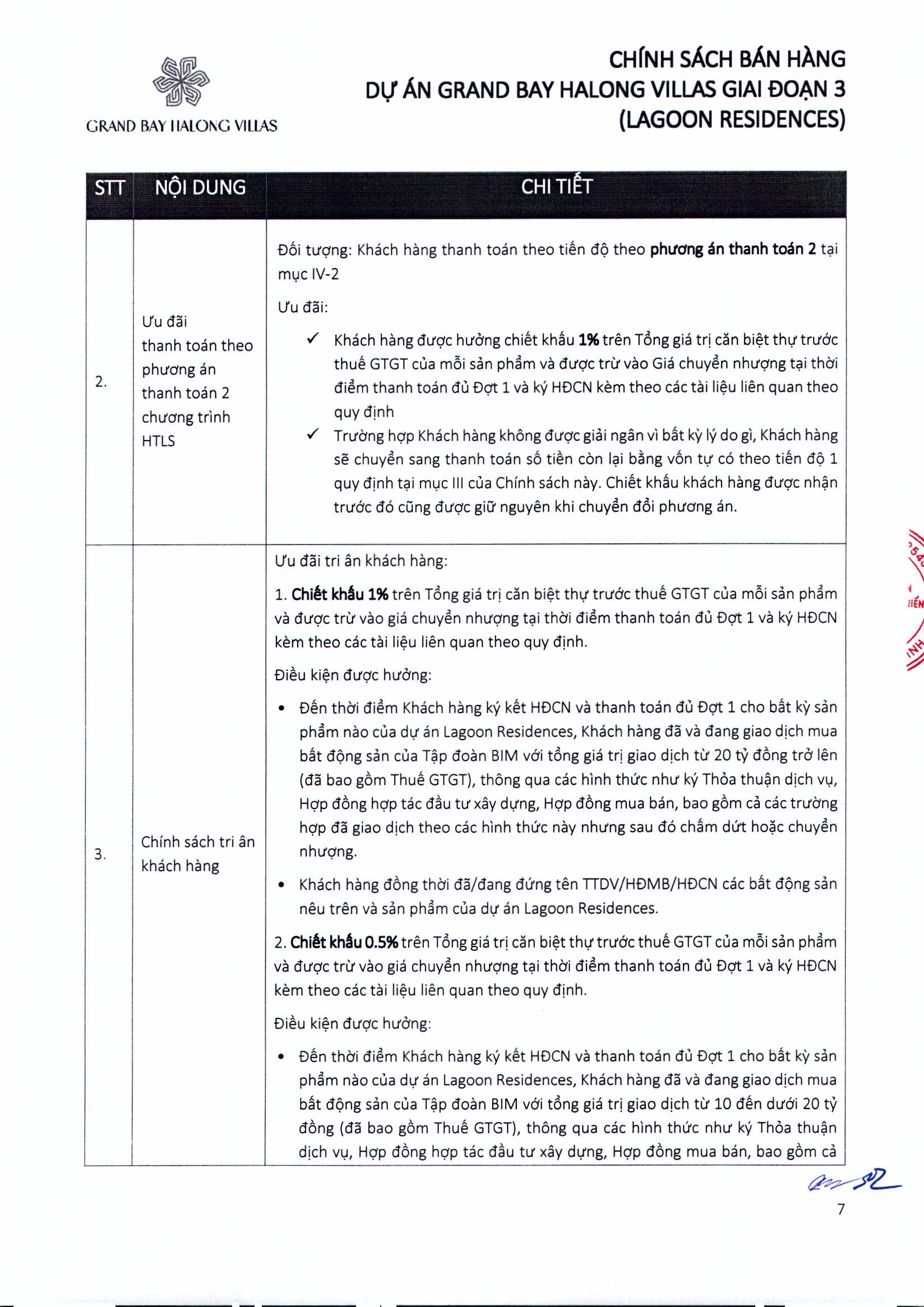 CHÍNH SÁCH BH BIỆT THỰ LAGOON RESIDENCE