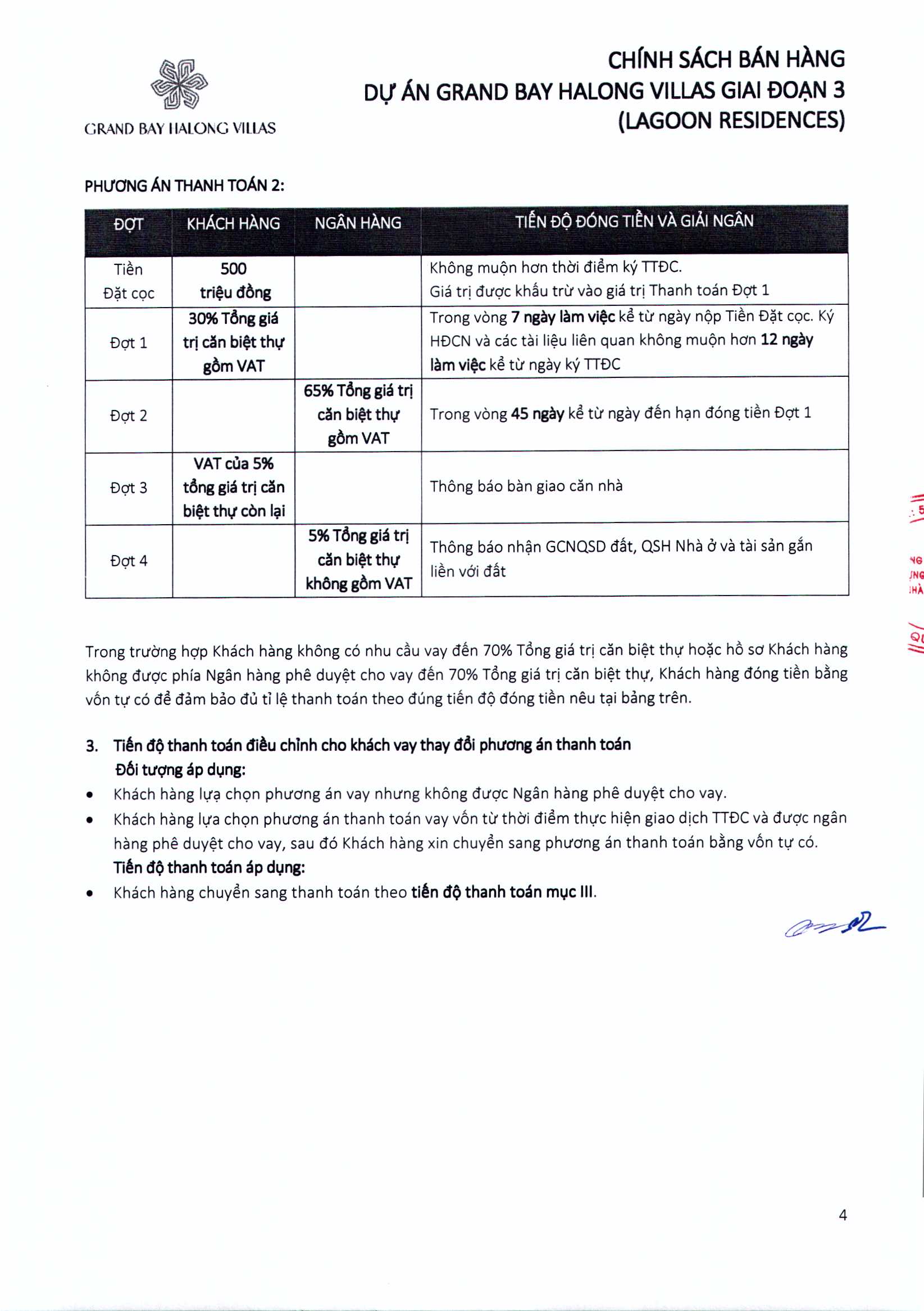 • Giá bán biệt thự không thay đổi chỉ là thay đổi quy trình kí hợp đồng