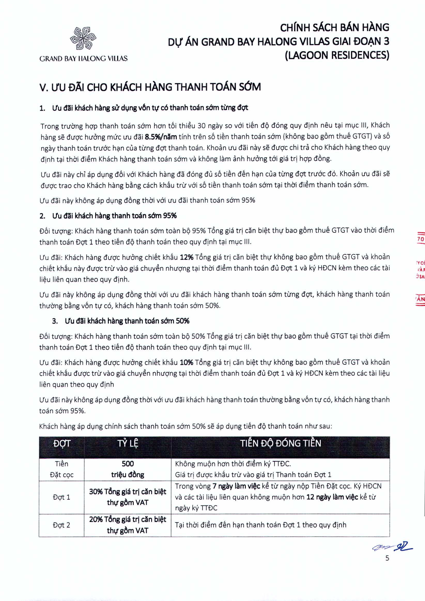 • Thanh toán sớm 95% Nhận chiết khấu từ 12%